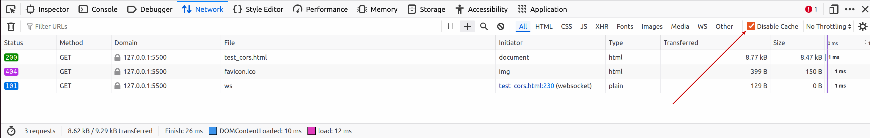 Lưu ý: Trong quá trình thao tác, quý khách nên tick chọn ô Disable Cache trong tab Network của DevTools (F12) để tránh việc trình duyệt sử dụng lại kết quả kiểm duyệt CORS cũ, giúp việc kiểm thử chính xác hơn.